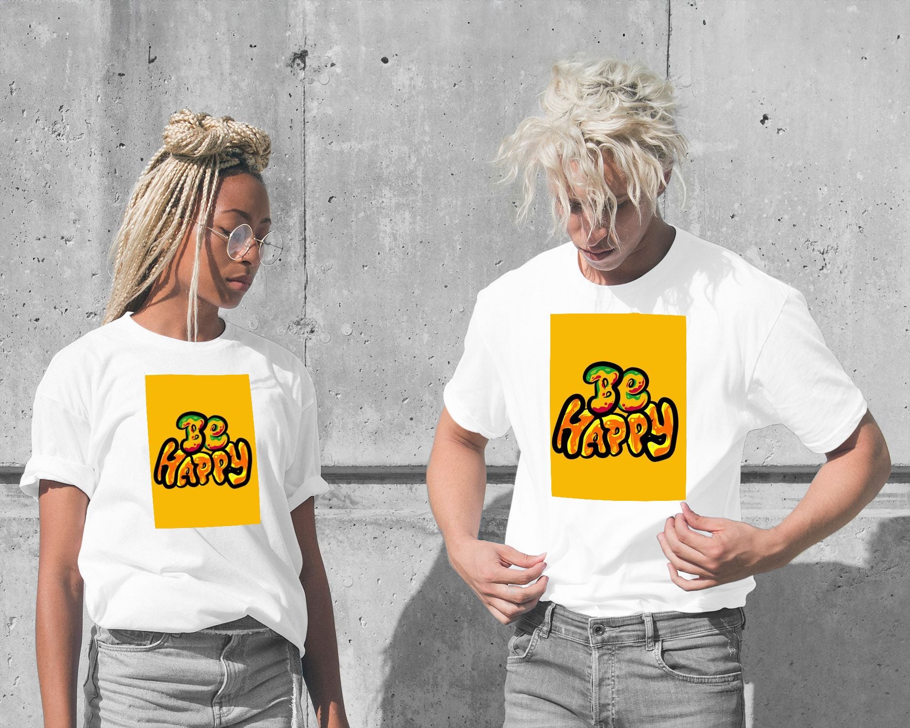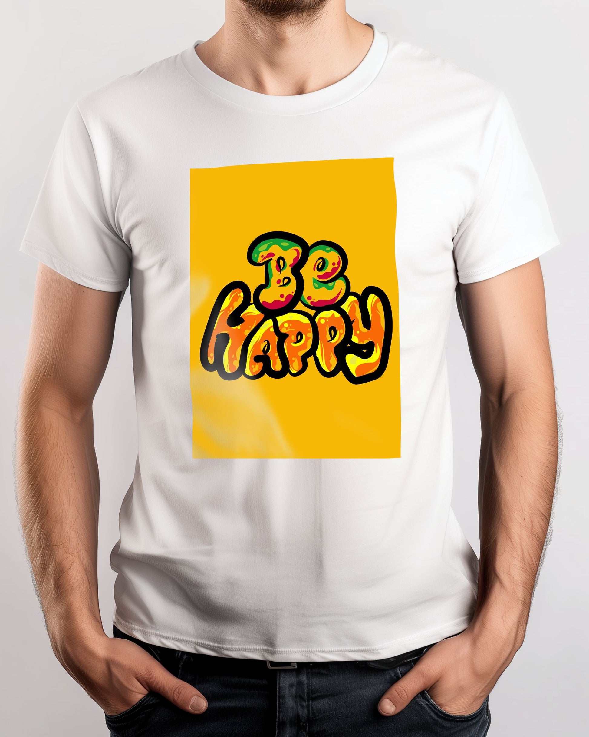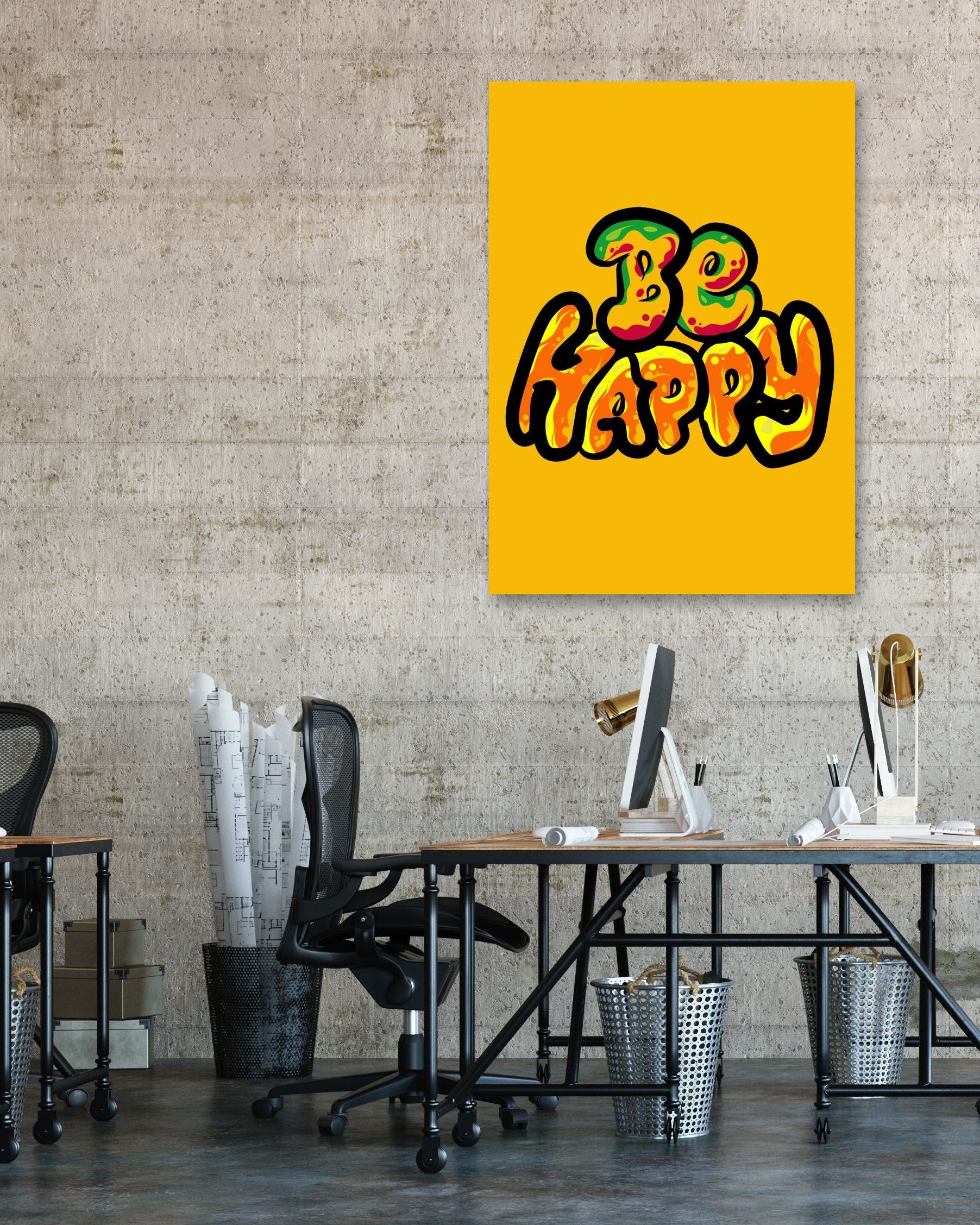 Be happy is an illustration created by @msheltyan inspired and caricatured in Typography that you can buy in metal poster.