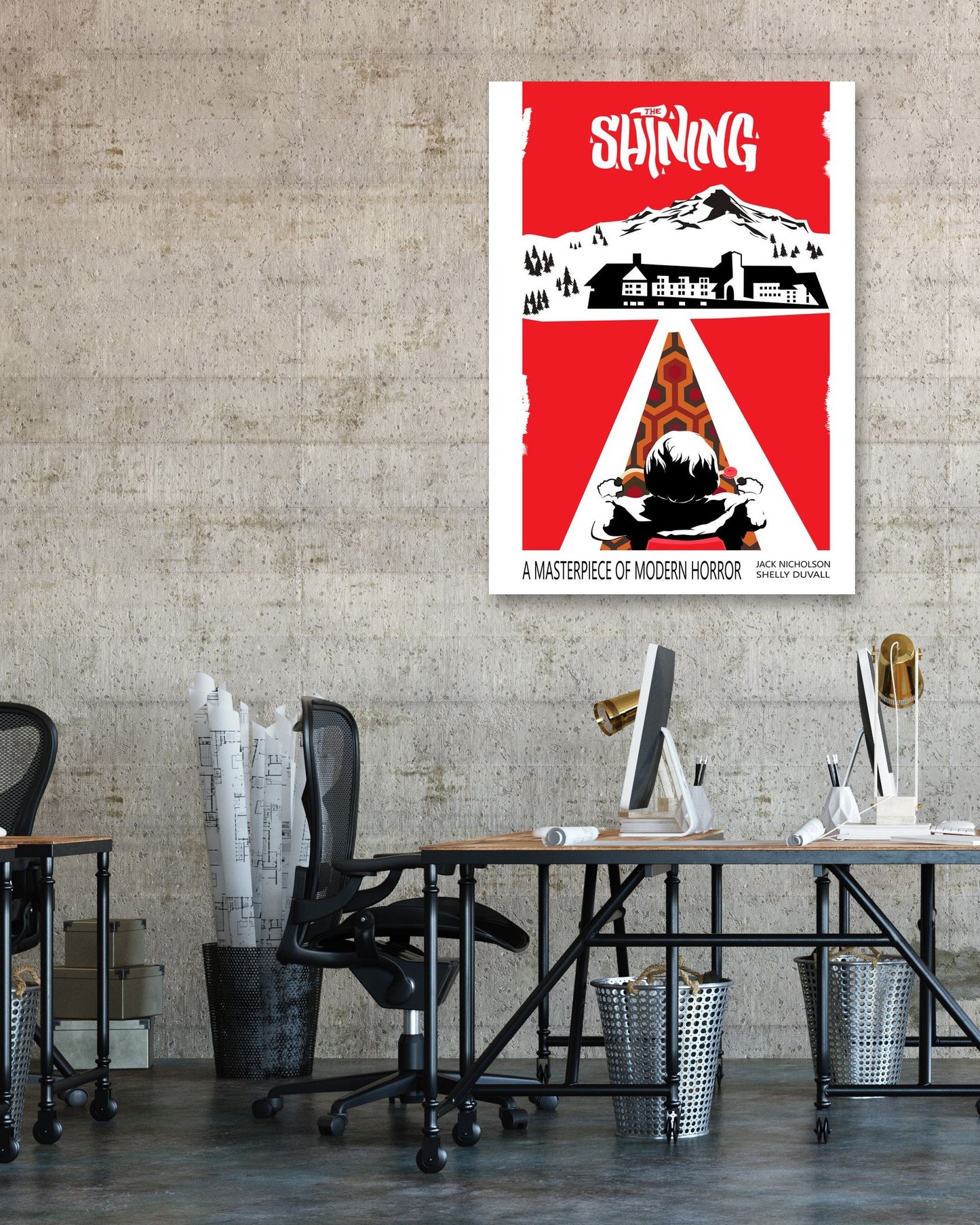 the shining is an illustration created by @insaneclown inspired and caricatured in Movies that you can buy in metal poster.