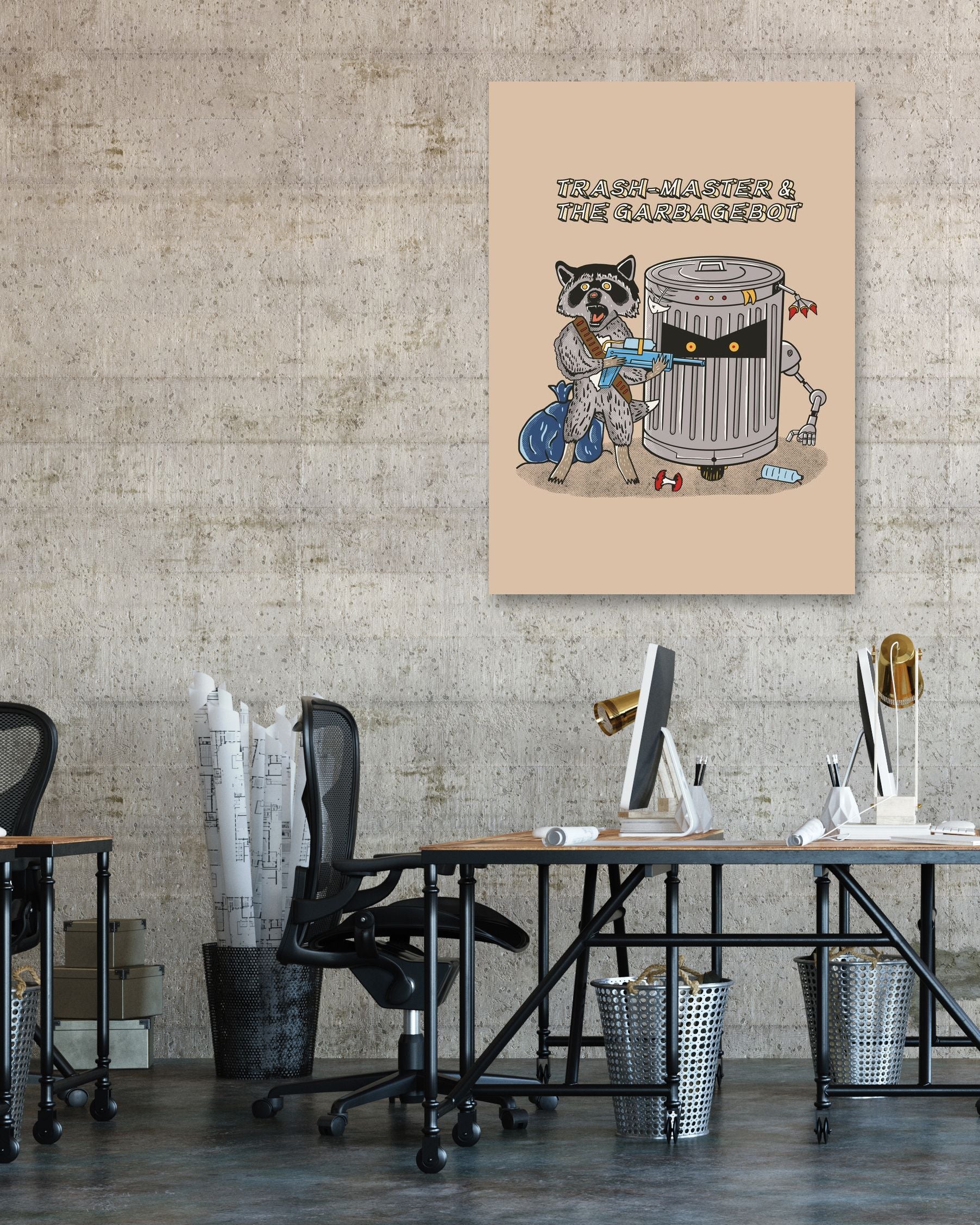 trash master & the garbage bot is an illustration created by @nyuwunsewu inspired and caricatured in Illustrations that you can buy in metal poster.