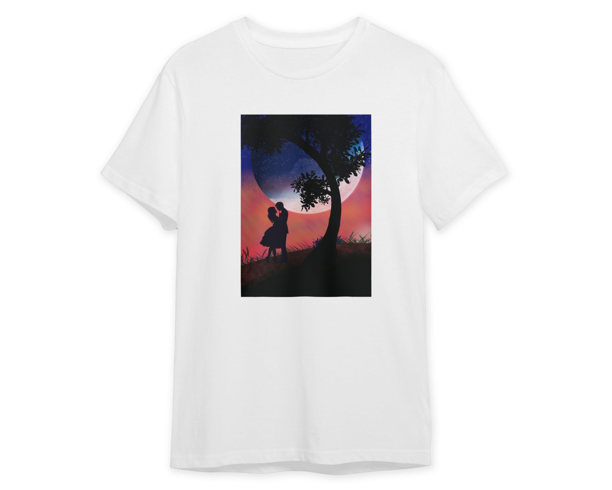 silhouette of a romantic couple under a tree with a view of the earth - @elzart