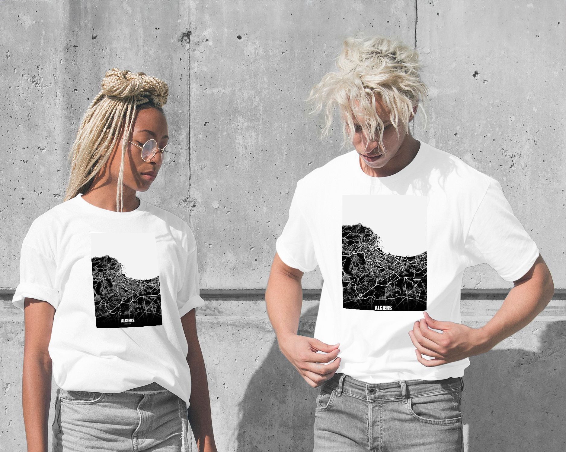 Algiers Algeria Dark Negative Map - @ZakeDjelevic