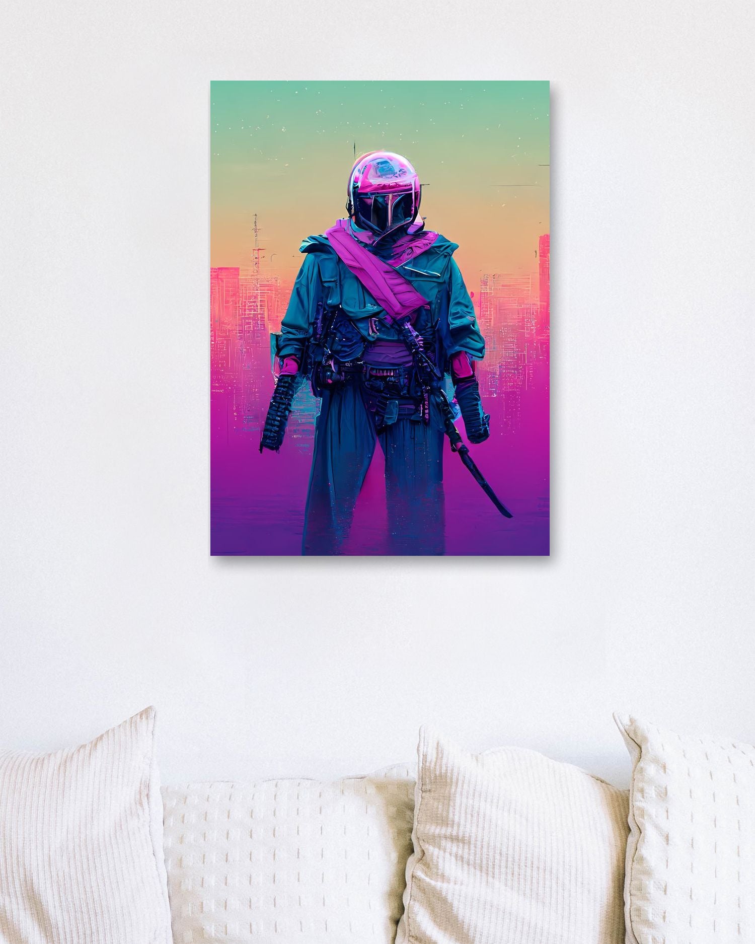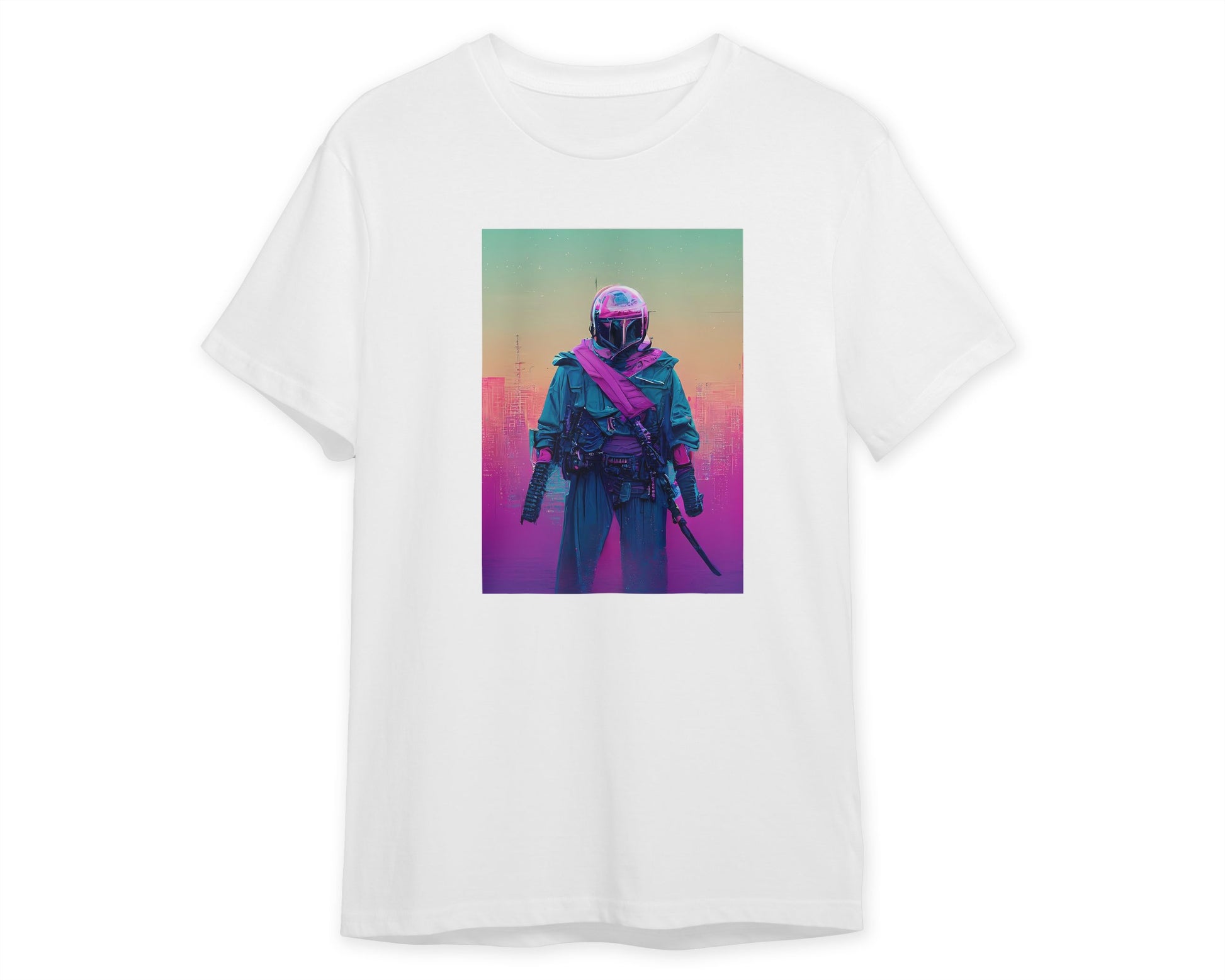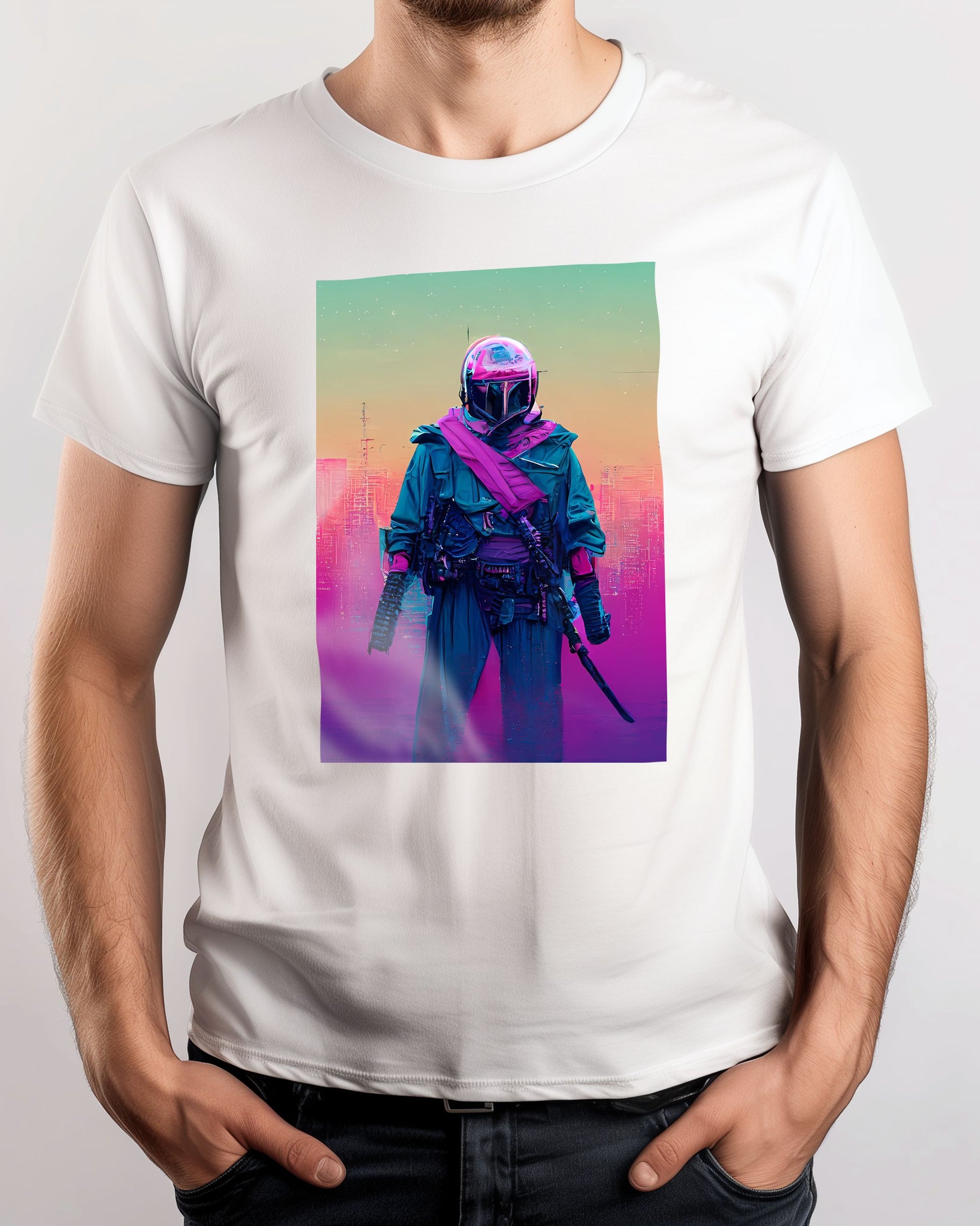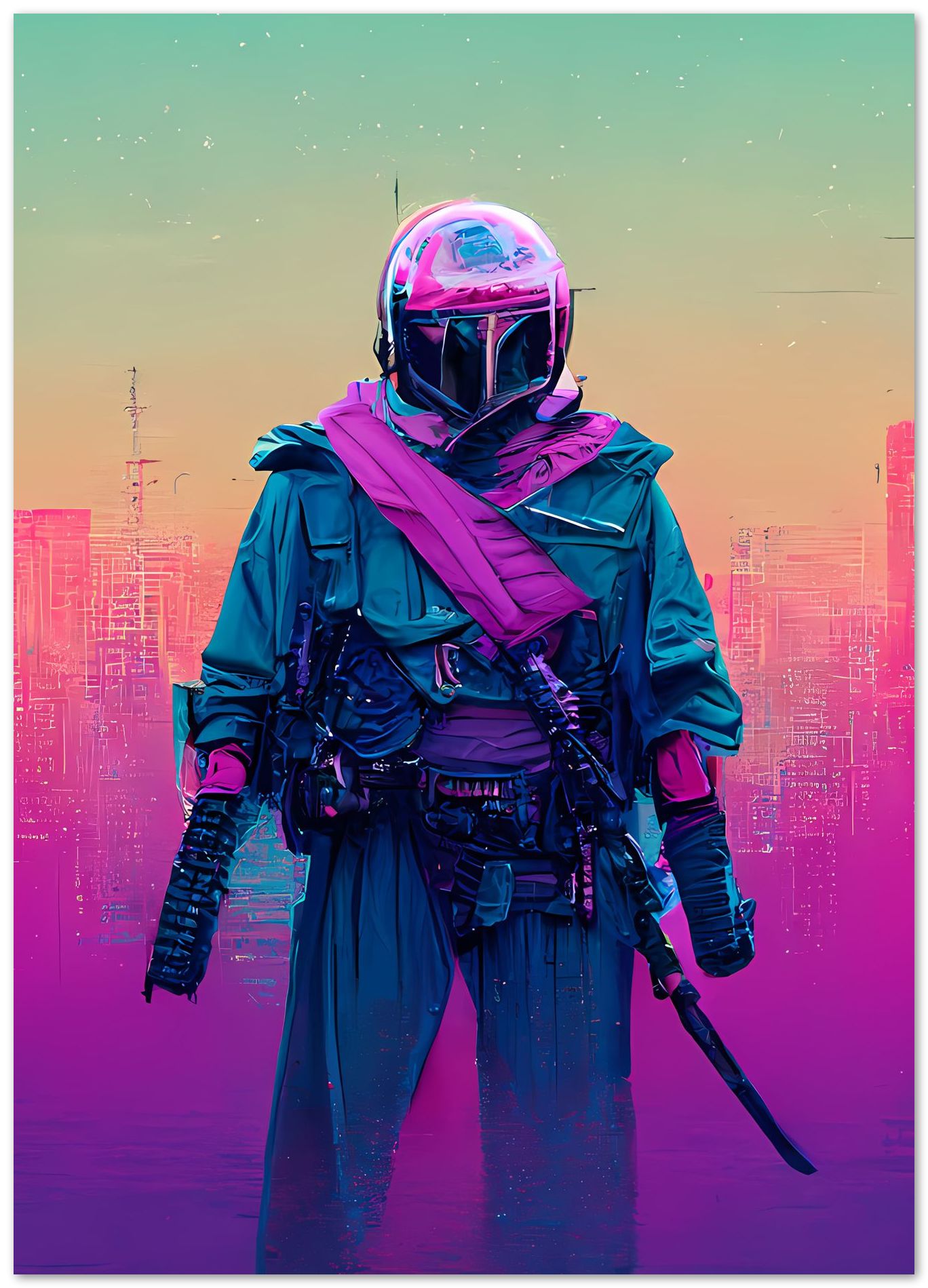 Bounty hunter vapor wave colorful is an illustration created by @SanDee15 inspired and caricatured in Movies that you can buy in metal poster.