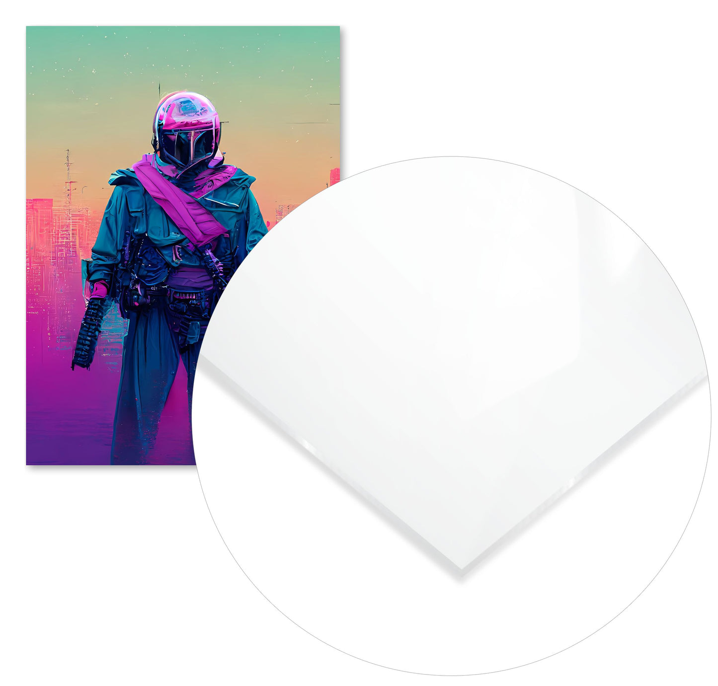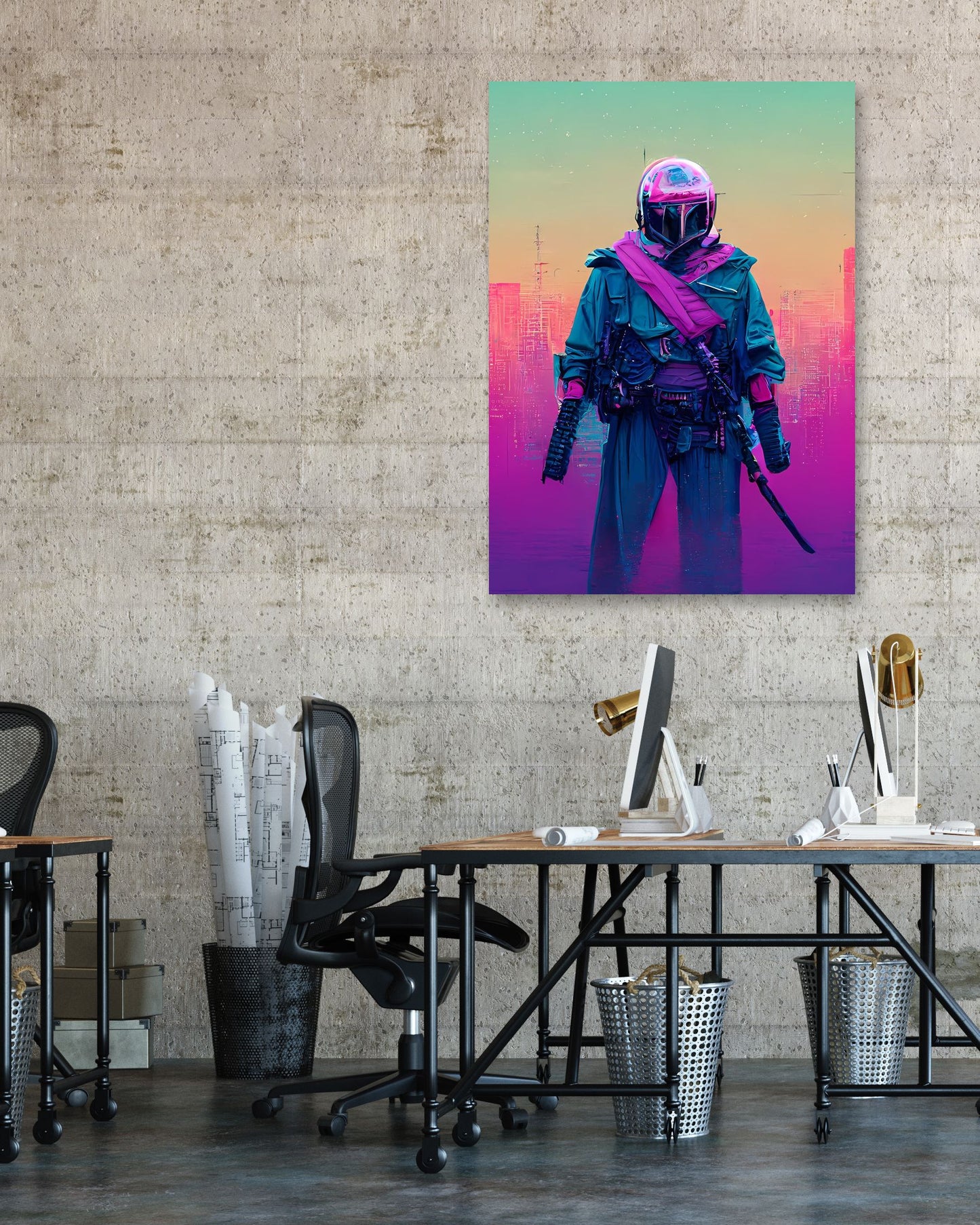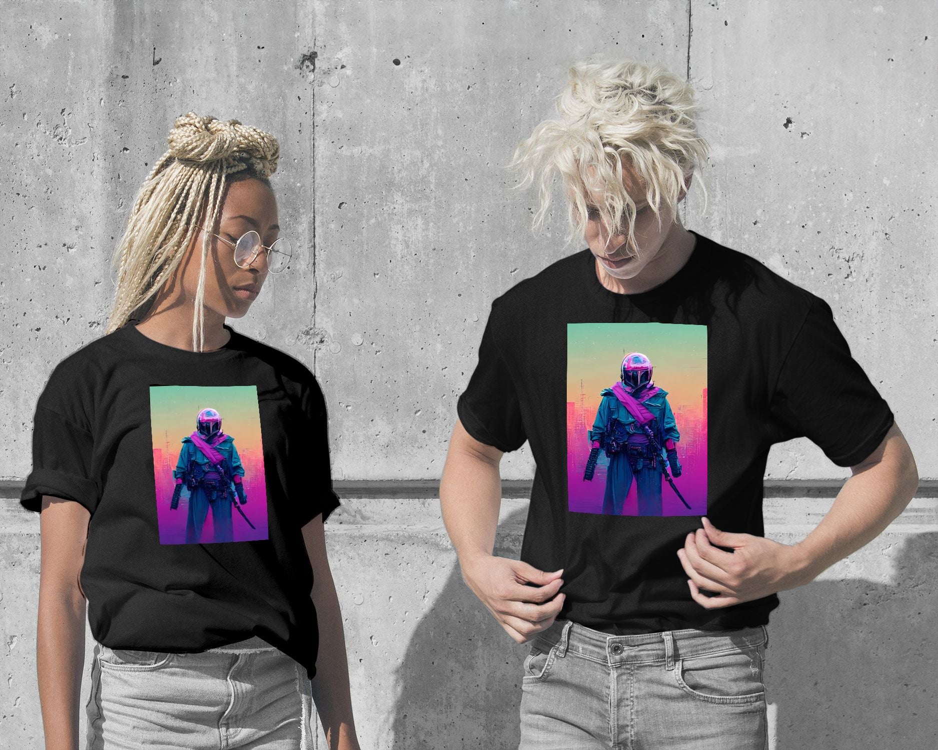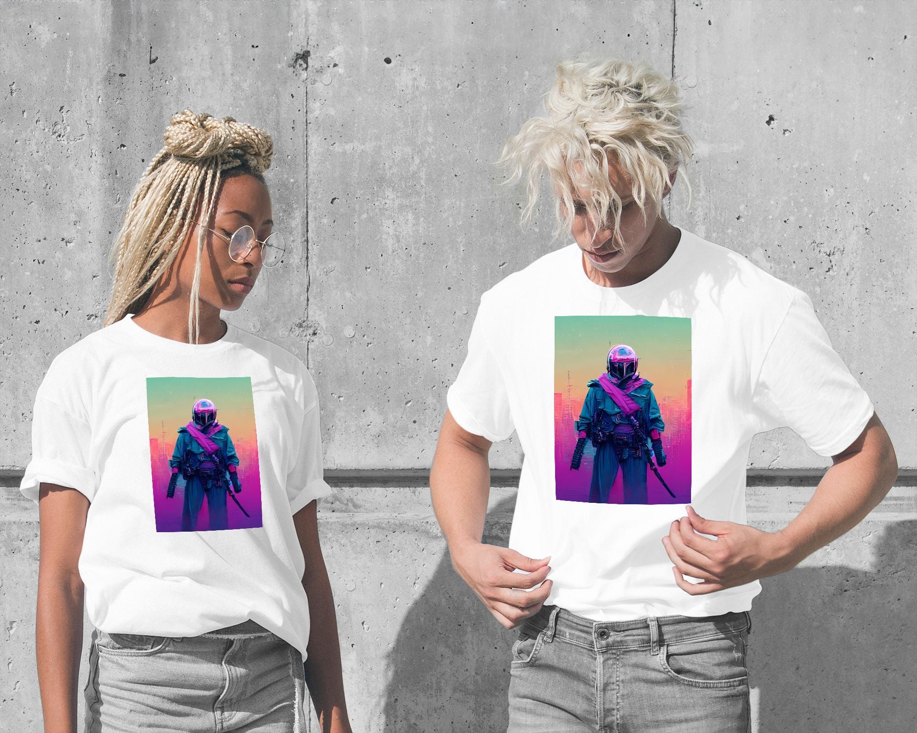 Bounty hunter vapor wave colorful is an illustration created by @SanDee15 inspired and caricatured in Movies that you can buy in metal poster.