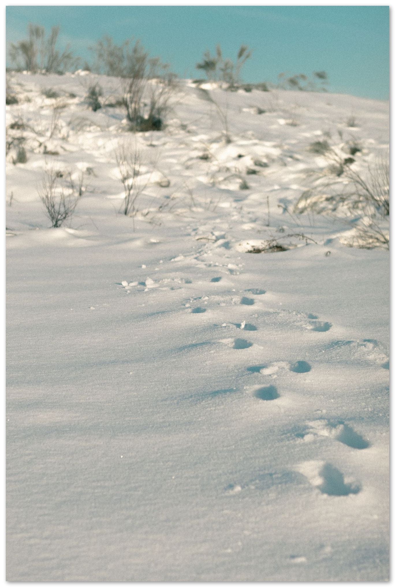 Camino de pisadas en la nieve conduciendo a la cima de un monte - @filmload