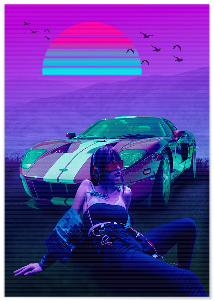 Car Retro Synthwave Sun Girl - @MiracleCreative