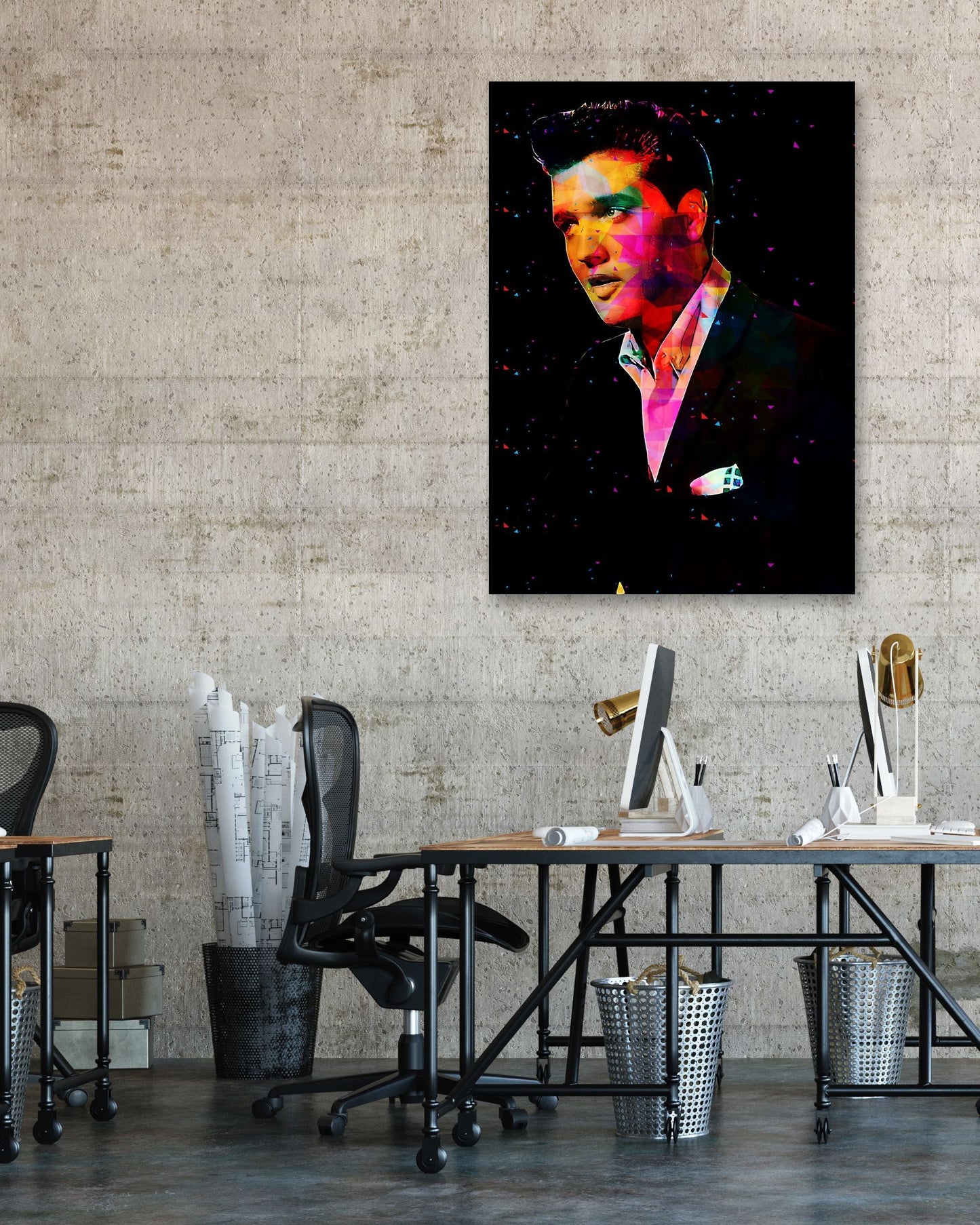 Elvis Presley is an illustration created by @ColorfulArt inspired and caricatured in Music that you can buy in metal poster.