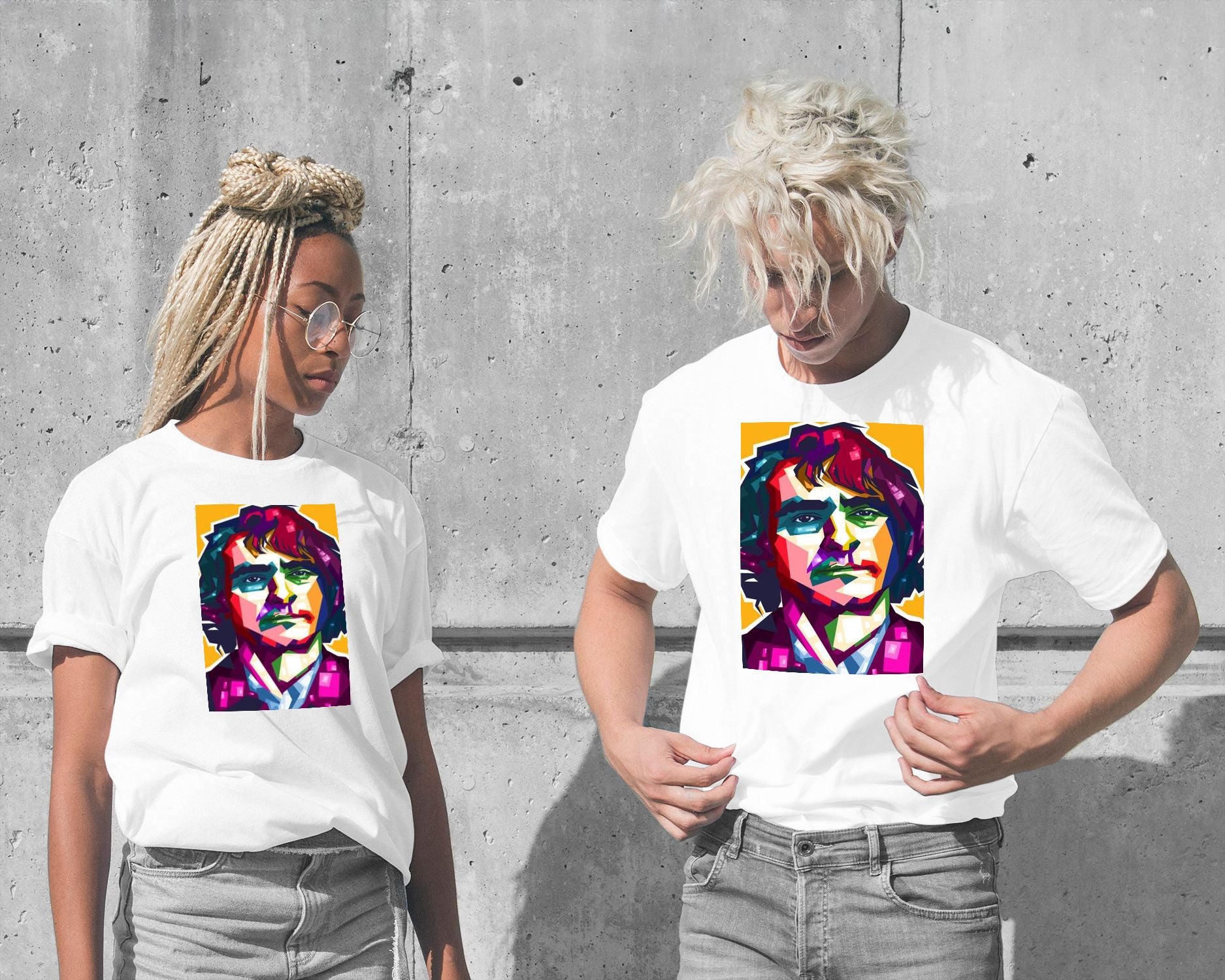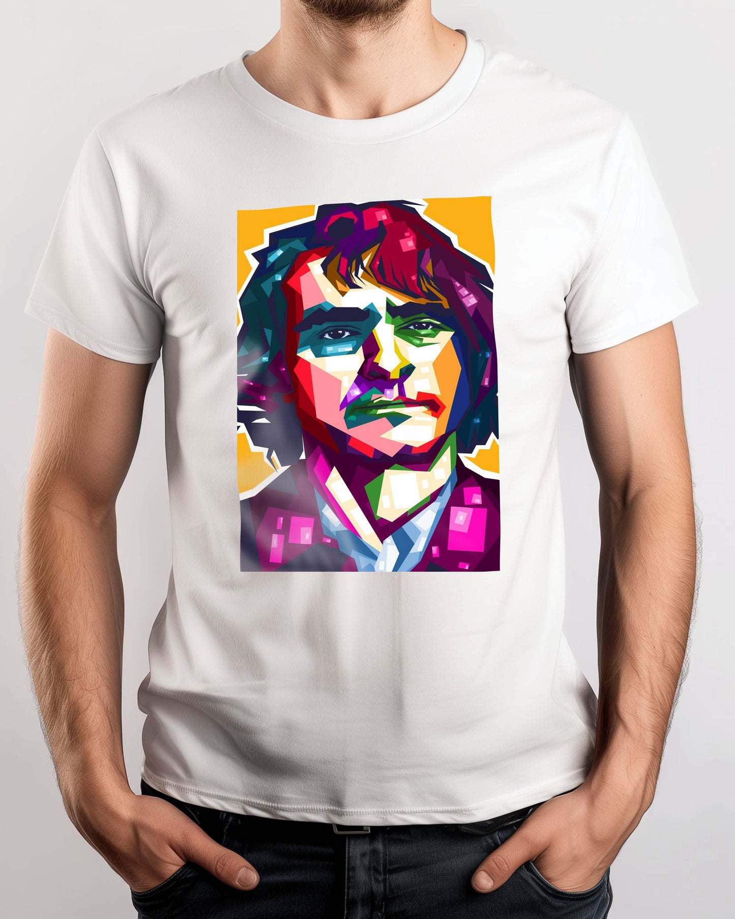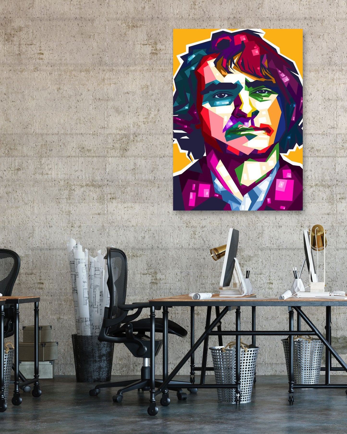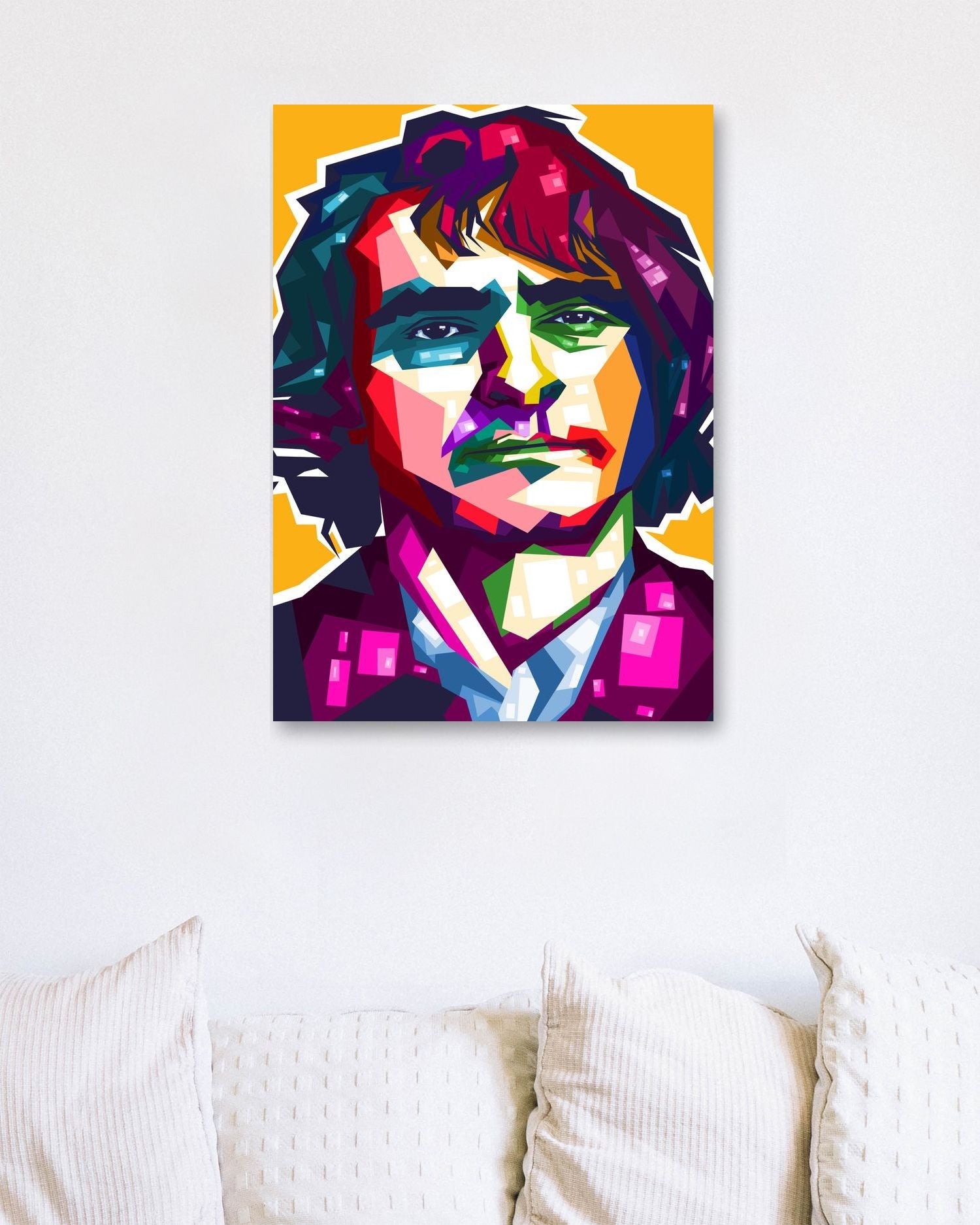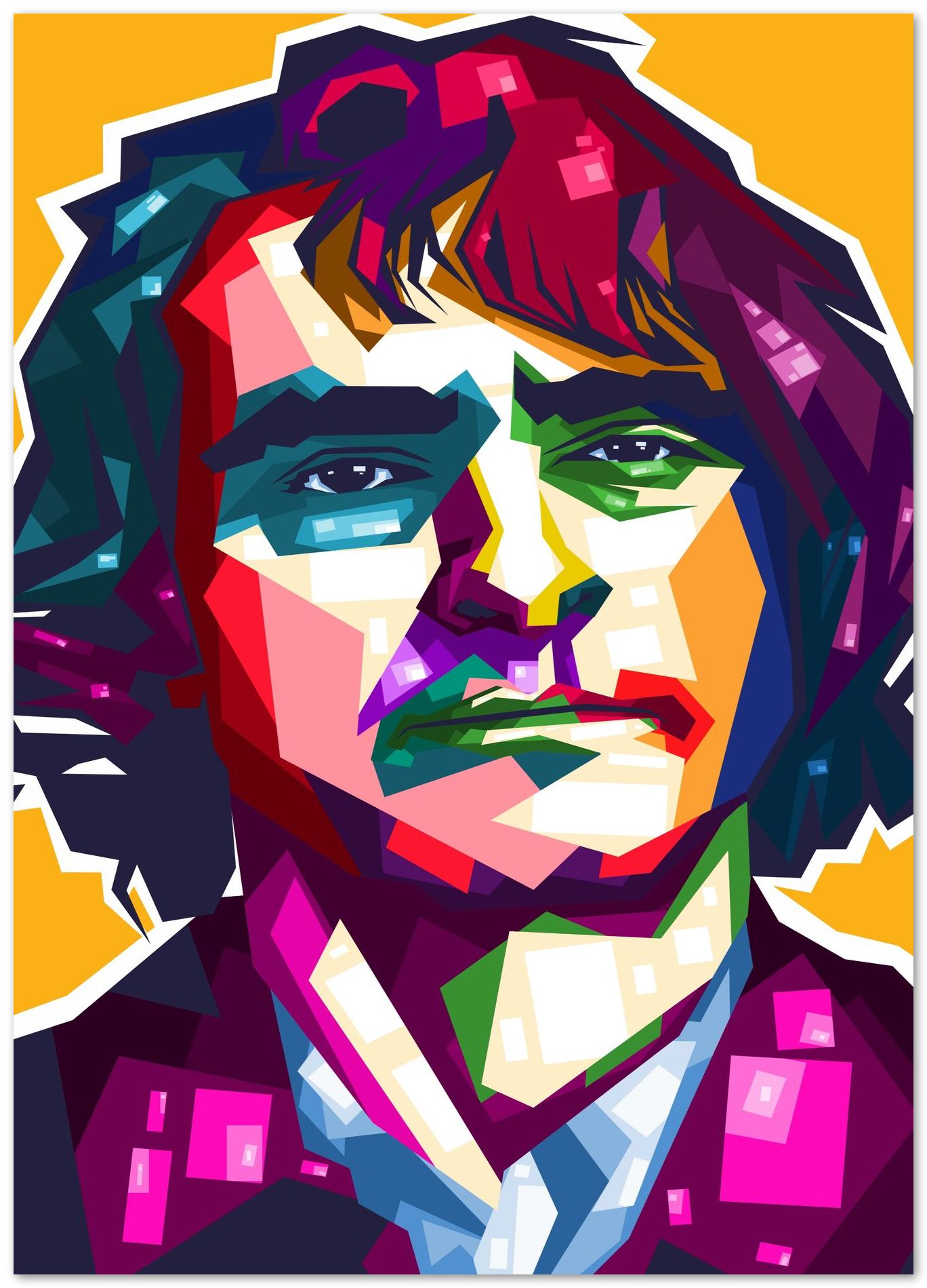 Joaquin Phoenix is an illustration created by @FadilRamadhan inspired and caricatured in Celebrities that you can buy in metal poster.