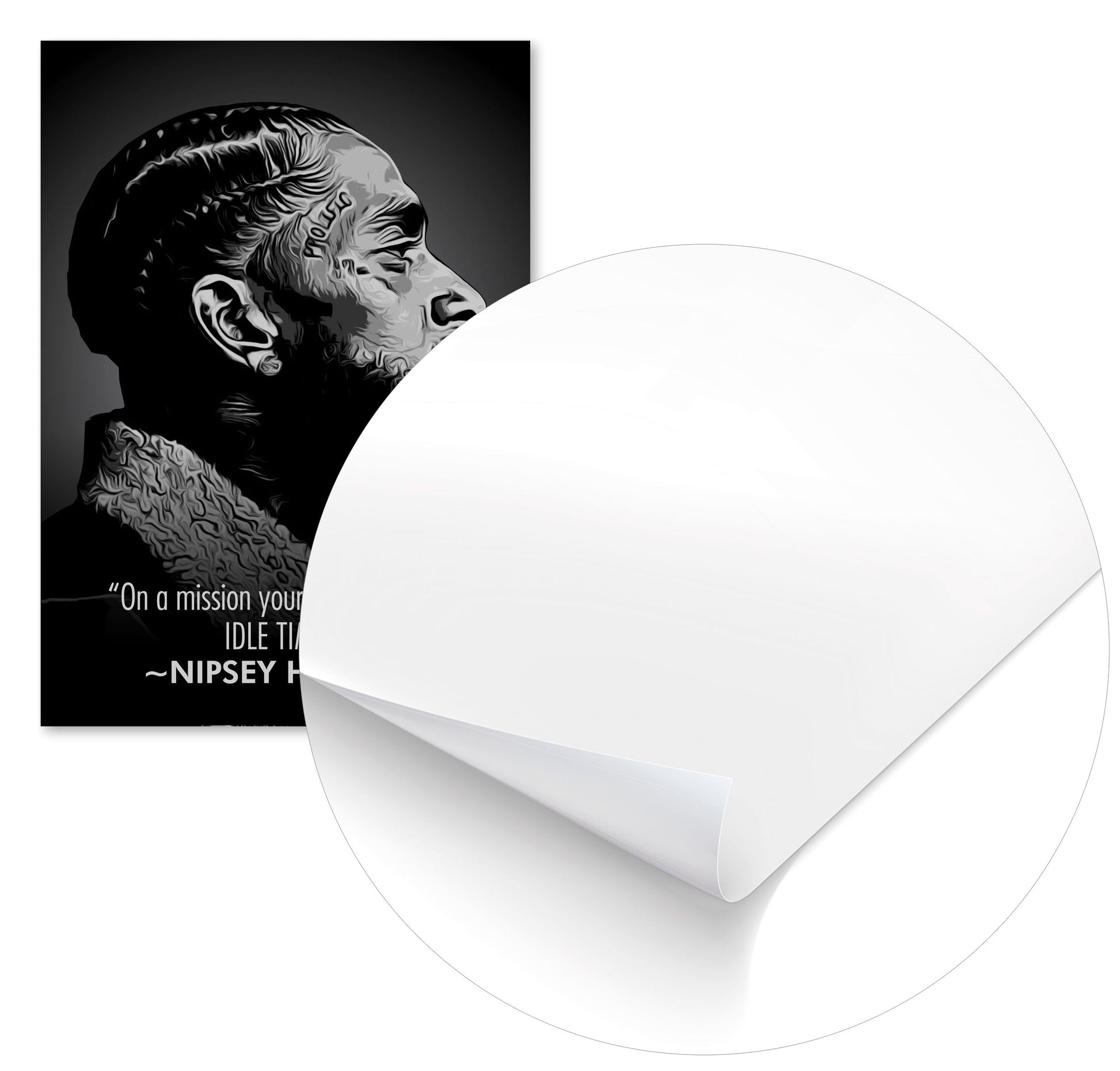 Nipsey Hussle is an illustration created by @miracle_std inspired and caricatured in Music that you can buy in metal poster.