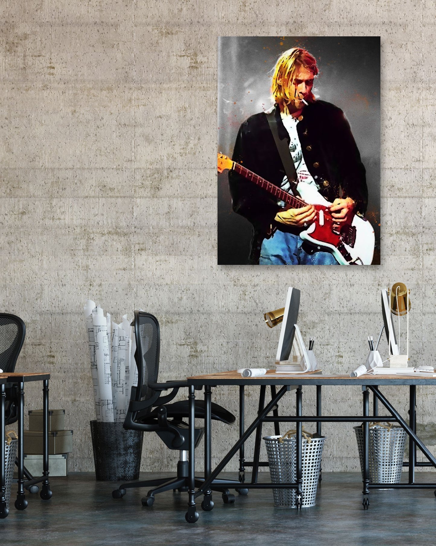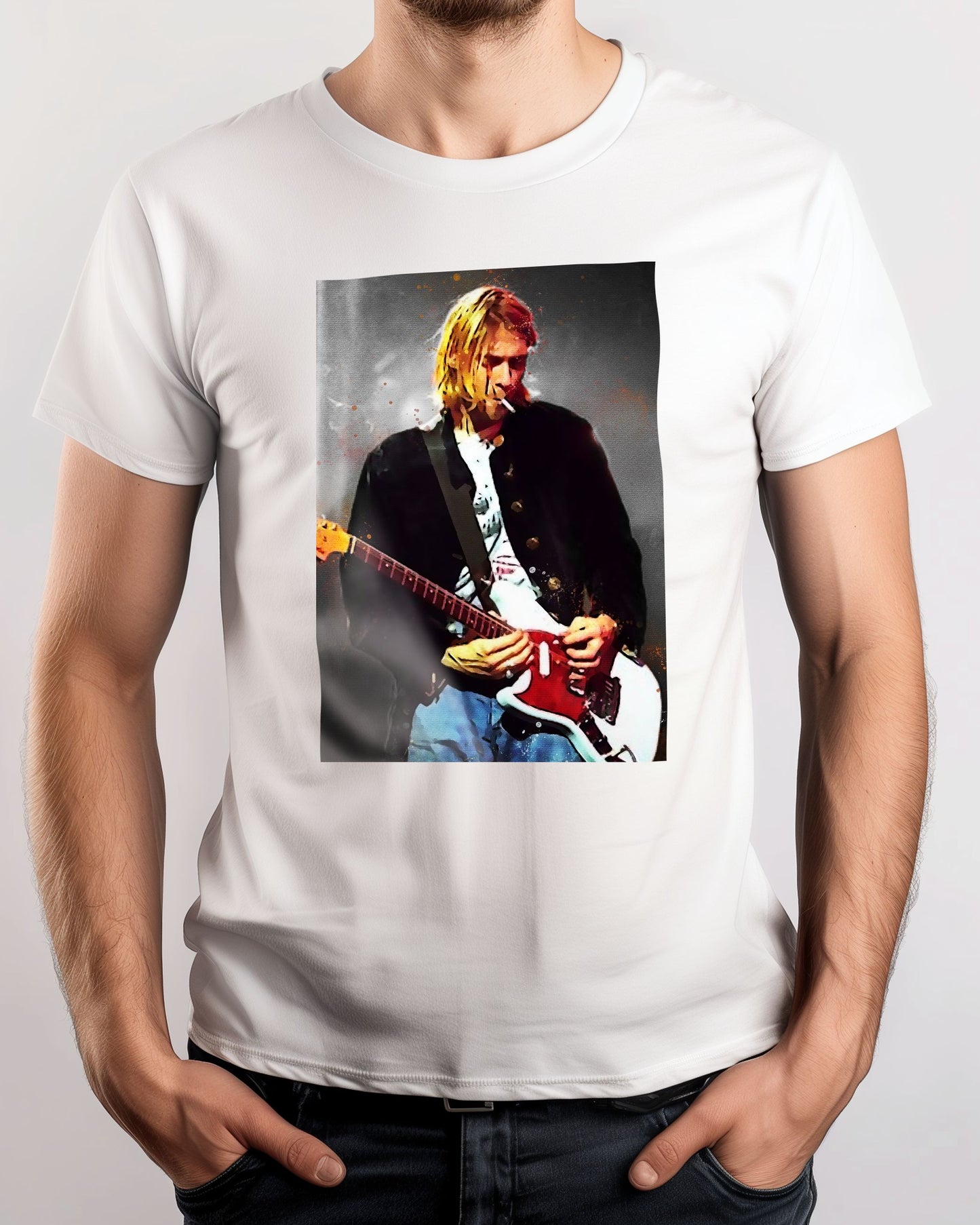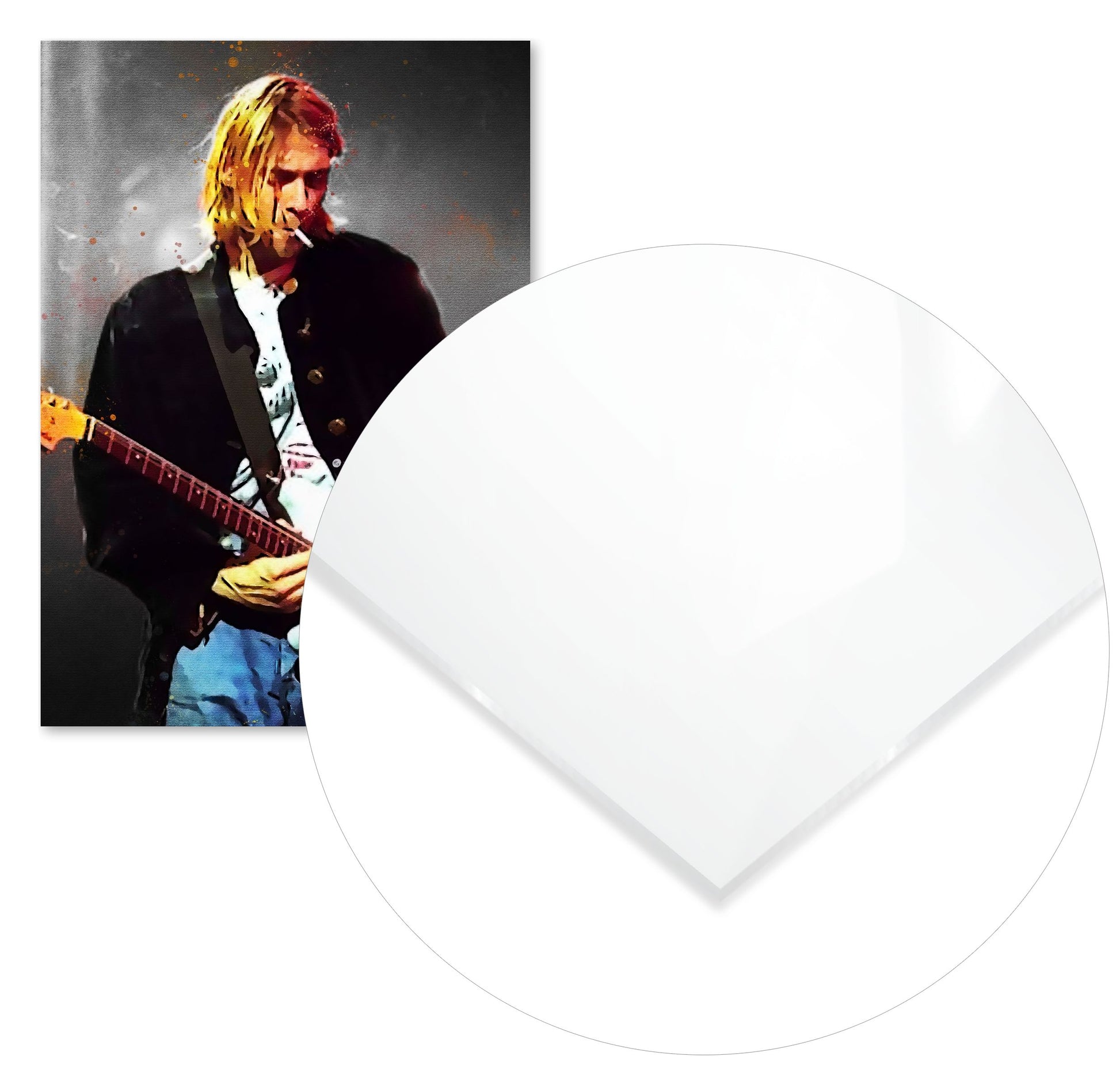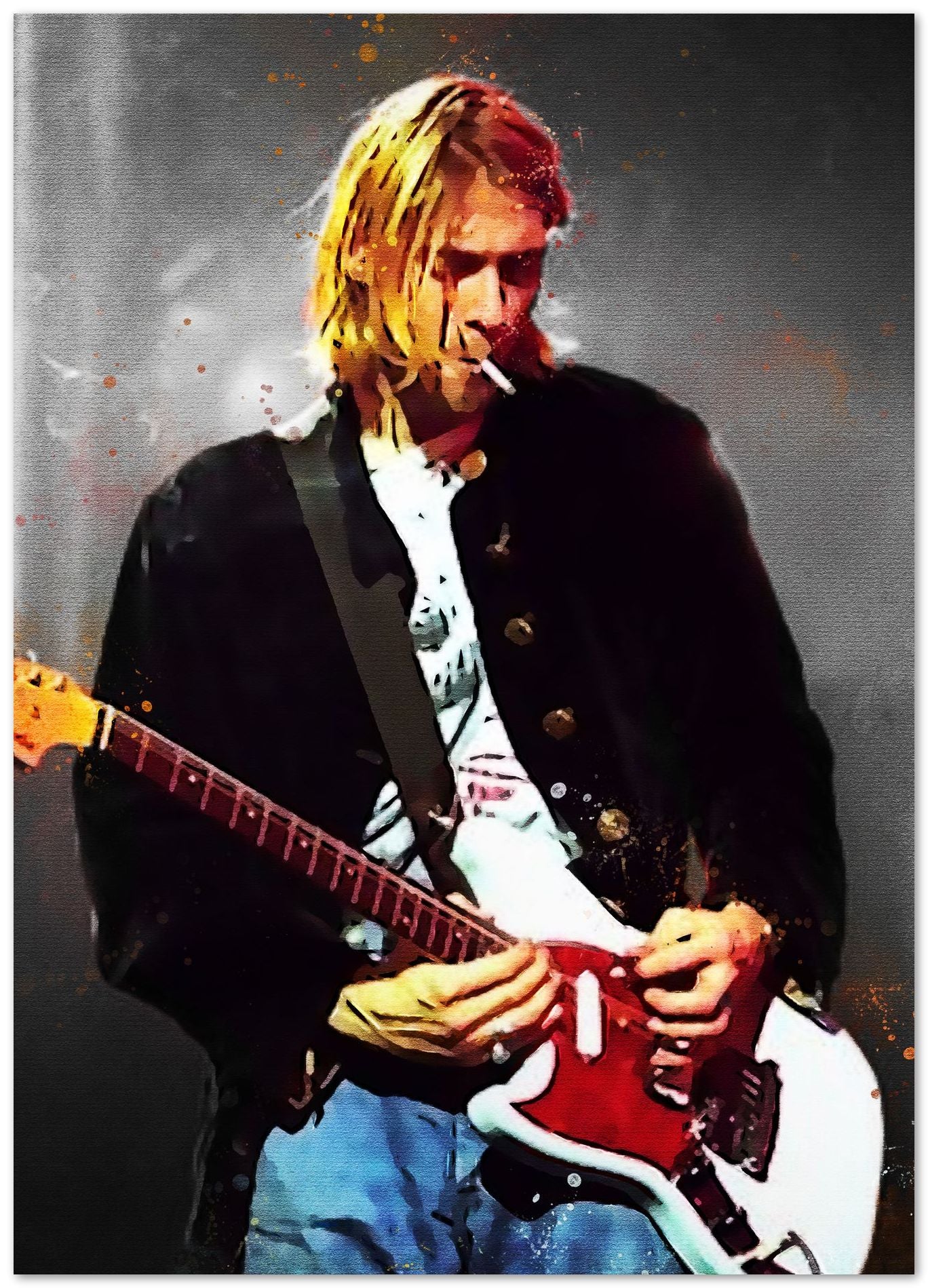 splatter by Kurt cobain is an illustration created by @Agatha47 inspired and caricatured in Music that you can buy in metal poster.
